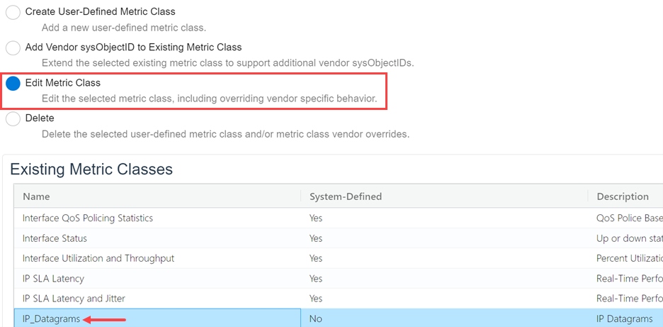First, as shown below, select Edit Metric Class and the metric class you are editing.