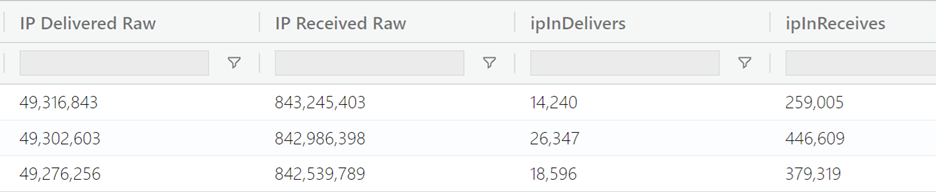 These OIDs provide the number of received and delivered IP datagrams respectively and they are both Counter types. The value you get is the cumulative number of received/delivered datagrams.