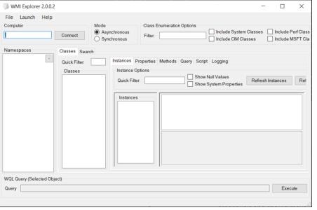 2. If you can connect to the Active Directory/LDAP server, then run the WMI Explorer included with your Windows Server (or downloaded to your Windows 10 system). The following screen appears.