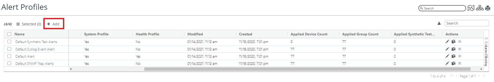 To create a new alert profile, click Add.
