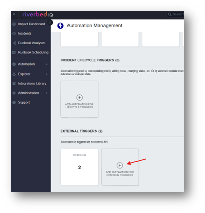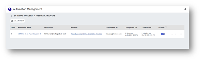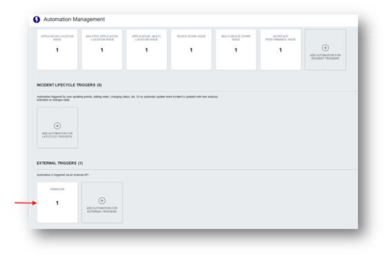 Webhook triggers on Automation Management page