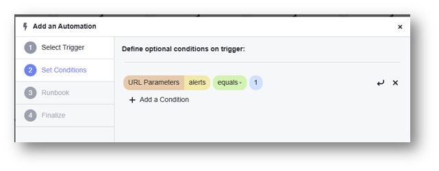5. Add a condition to identify the webhook (e.g., URL parameter "alerts" equals 1).