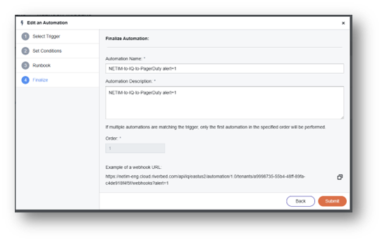11. Make note of the webhook URL—the text after "webhooks" is your Trigger field for NetIM. In the following example, the trigger is “?alert=1”.