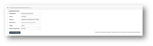 4. Click Send Test IQ Message and verify you get a “Succeeded...” message.
