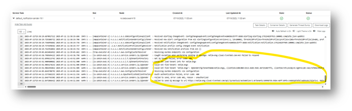 Check the Notification Sender logs