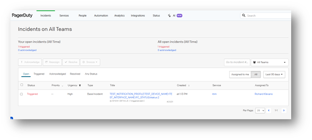 5. Check that the message appears in PagerDuty.