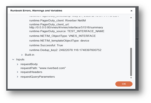 8. Verify the runtime.PagerDuty_summary and runtime.Successful values.