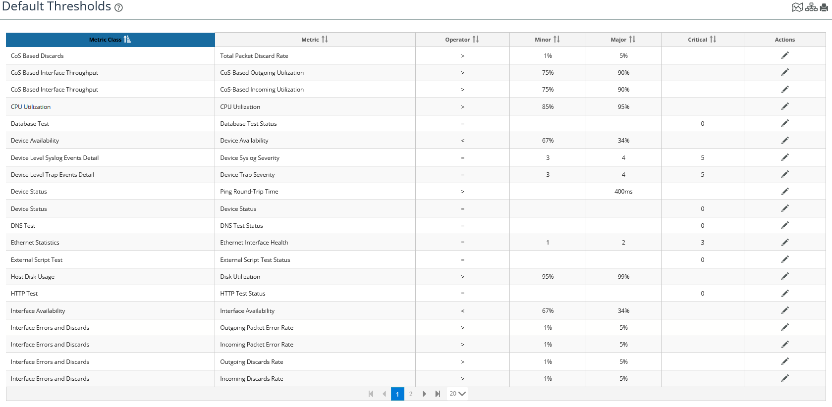 3. To edit a threshold, click the edit icon in the Action column of the threshold of interest.