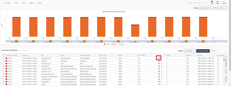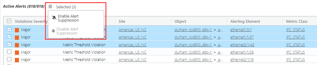 In the Alerts Manager page, if you want to disable several alerts that have similar characteristics (same metric class and same metric field), you can select them and create the alert suppression rule.