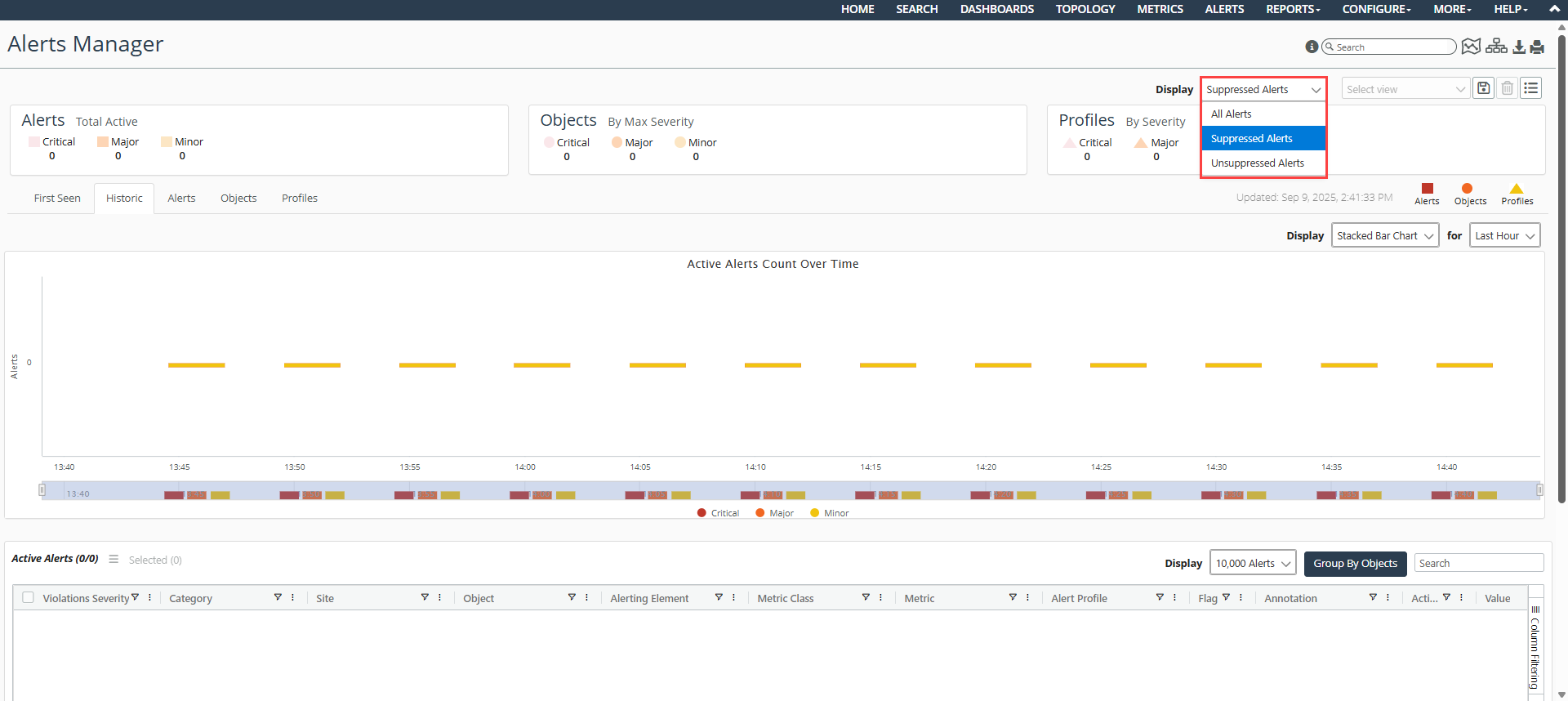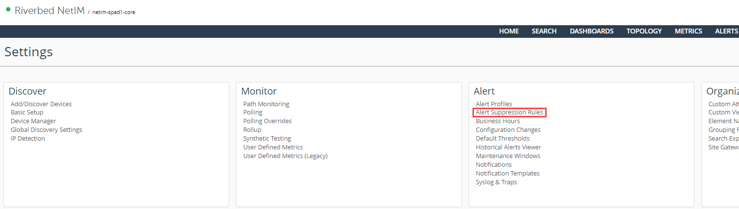 You can view all alert suppression rules in operation under Configure > All Settings > Alert: Alert Suppression Rules.
