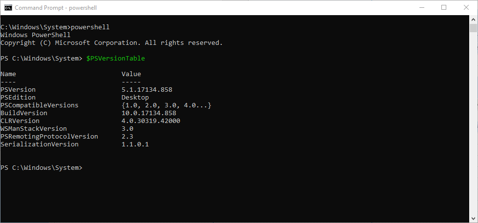 – Make sure that PowerShell version 5.1.x or greater is installed. In the unlikely event that the PowerShell version is not at least 5.1, get the appropriate installer and upgrade the PowerShell from Microsoft at