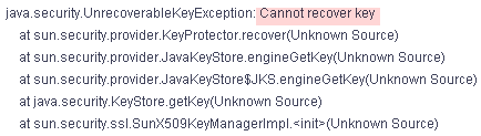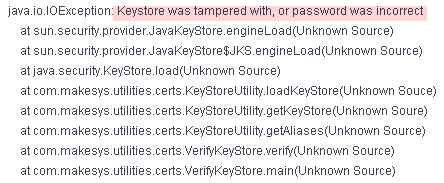 This error indicates that the keystore password is incorrect. The keystore password configured on the keystore does not match the password that the test engine has registered.
