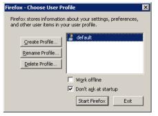 3. Open a command prompt on the test engine machine, navigate to the Mozilla Firefox directory (such as C:\Program Files(x86)\Mozilla Firefox\), and type firefox.exe -P at the prompt.