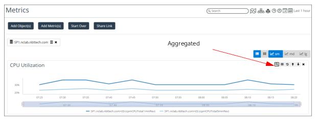 You can also graph metrics that contain multiple components as an aggregate average or graph each component individually. For example, you can view CPU Utilization for each CPU of the firewall named Firewall-PA-2020 or you can view CPU utilization as an aggregate average of all the CPUs. By default, the Metrics page will display in the individual component view.