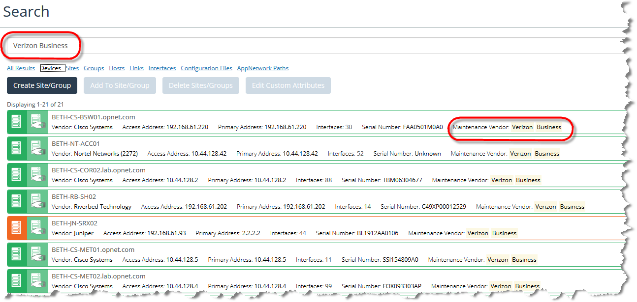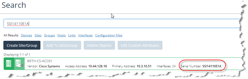 Search supports search by serial number and custom attribute values as well AppNetwork paths. You can also perform mass operations on search results such as deletion and custom attribute assignment.