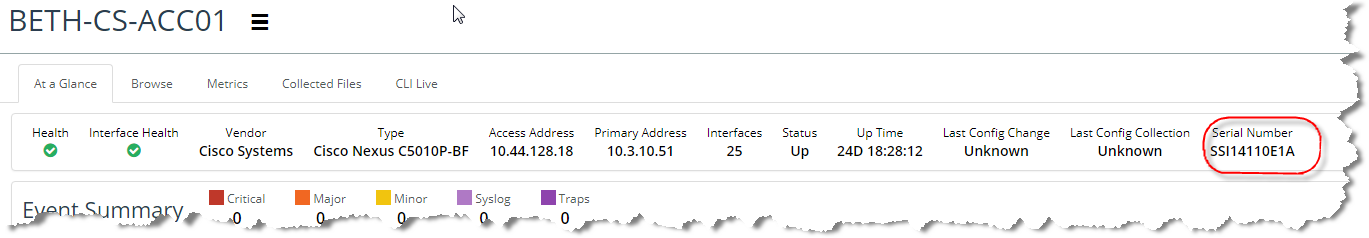 A device’s serial number is now searchable and is returned in the search results as well as in a device’s information ribbon, as shown in the following screens.