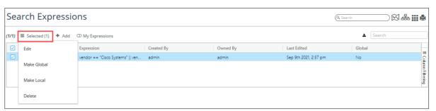 4. When you are satisfied with your selections, click Submit. The search expression then appears as an entry in the Search Expressions table, and can be edited, deleted, made global or local, as shown in the following screen.