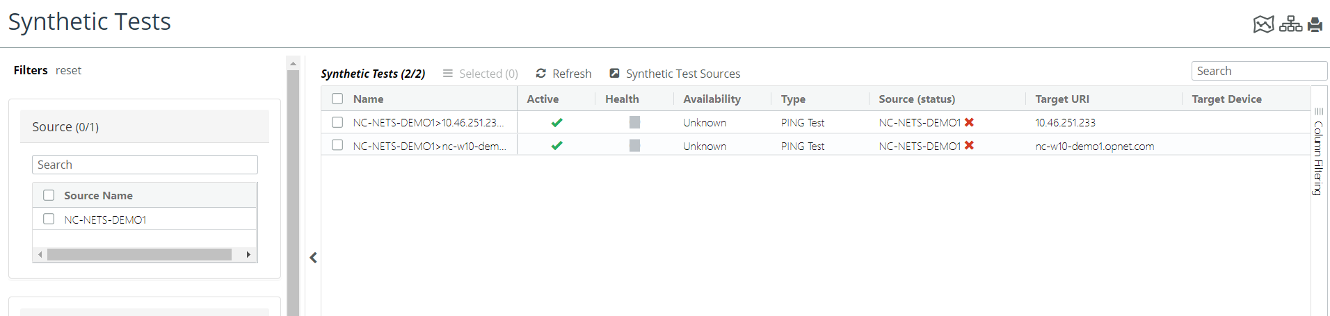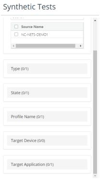 Synthetic Tests filter tool