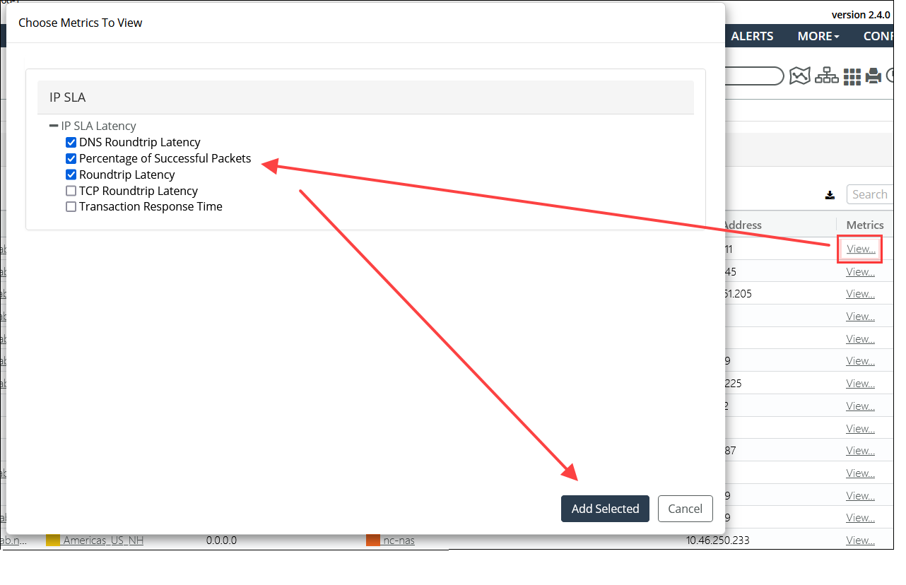 After selecting metrics of interest, click Add Selected to see a histogram of those metrics, as shown in the following screen.