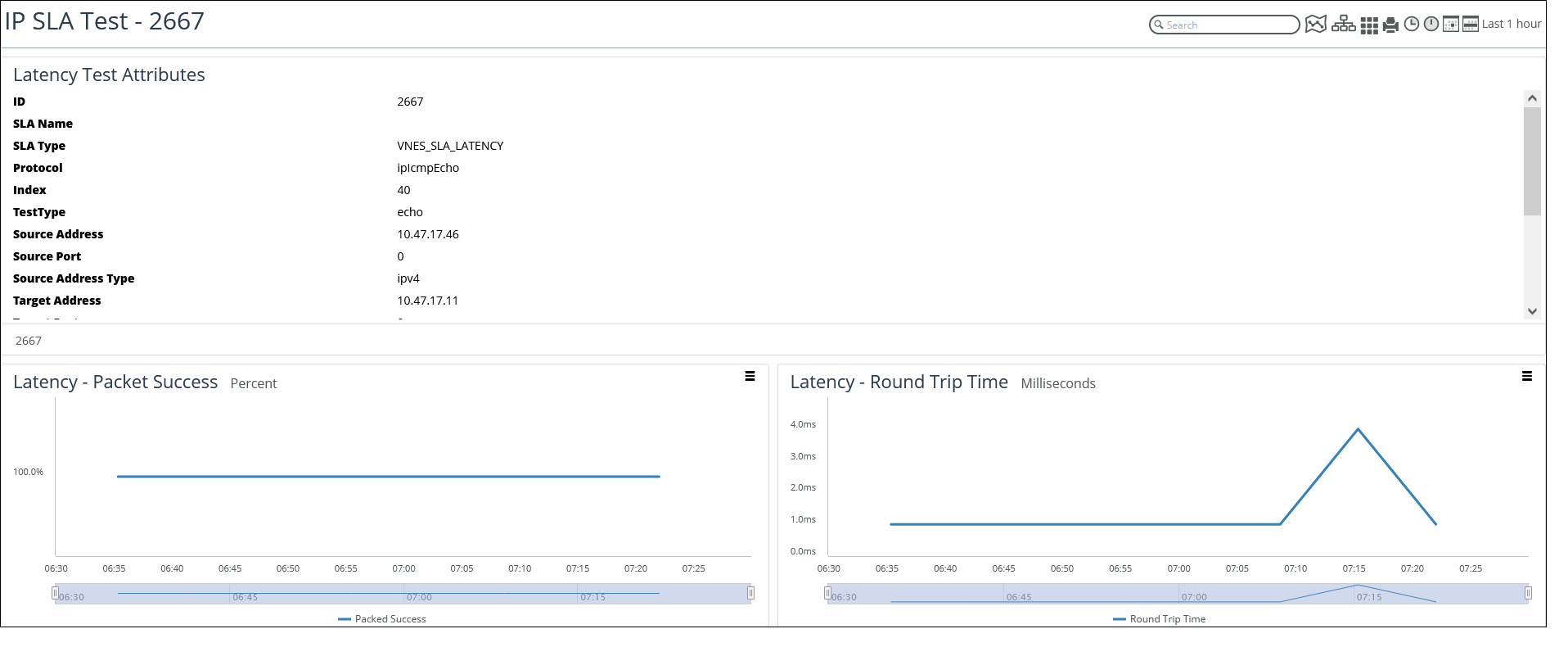 • Test Name—Provides details of the IP SLA test being executed, as shown in the following screen.