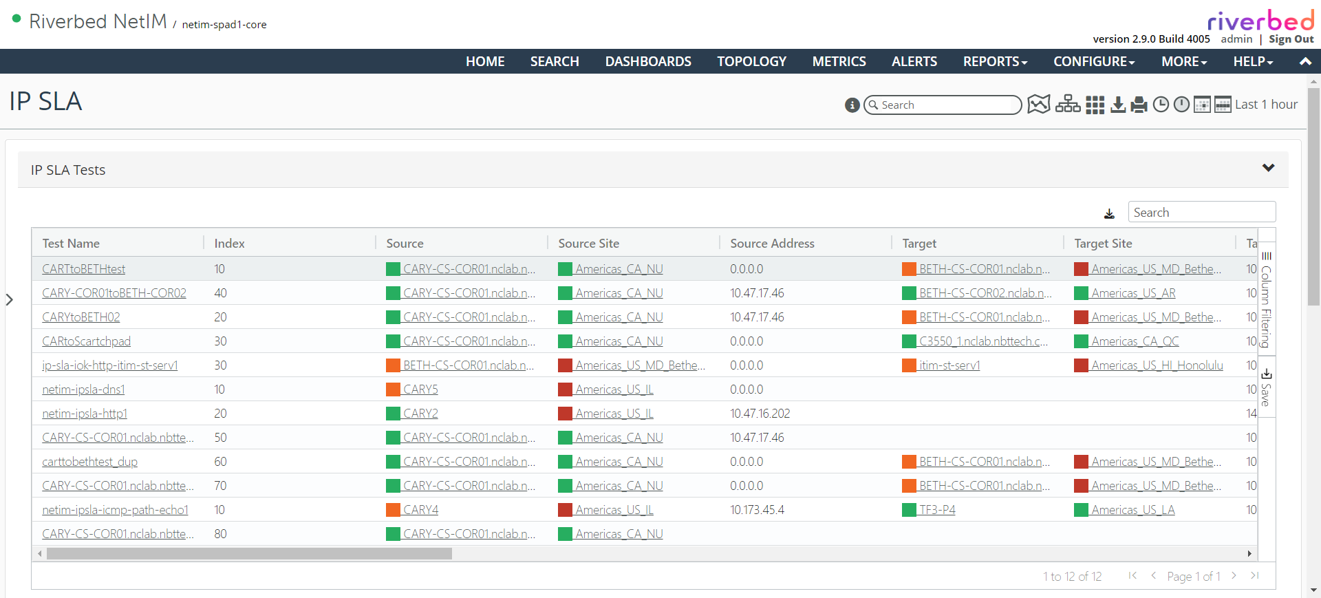 • Source—Provides details of the device being tested by displaying the IP SLA tab of the source device page that contains all the IP SLA tests associated with that device.