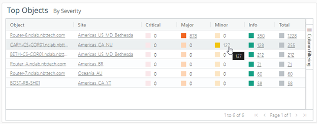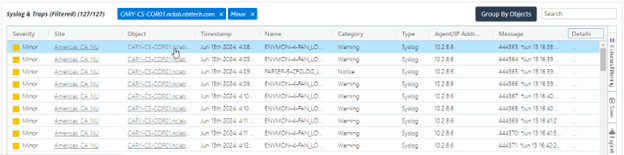 For example, clicking the count of Minor events for object Cary-CS-COR01 shown in